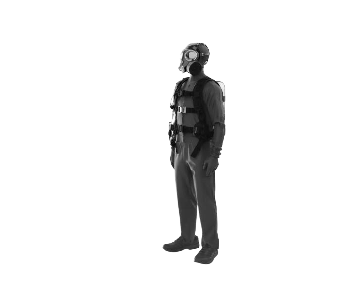 1、選擇一套適合人體模型胸圍尺寸的防護(hù)服穿在人體模型上,并按照正壓式消防空氣呼吸器的使用說(shuō)明,給人體模型正確佩戴正壓式消防空氣呼吸器,形成一個(gè)測(cè)試假人。